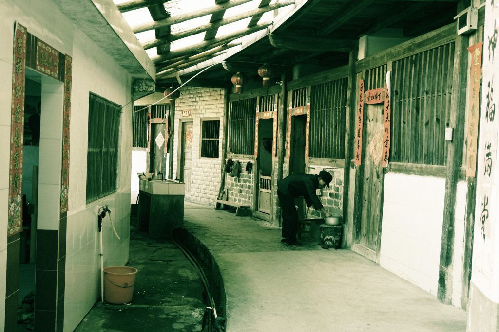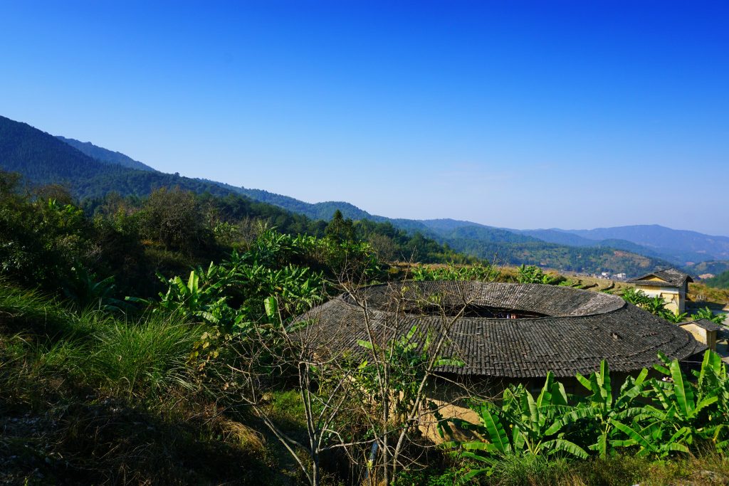 非常的幸运,我进到了一个半环形的土楼之中,并且还尝到了地道的客家菜。