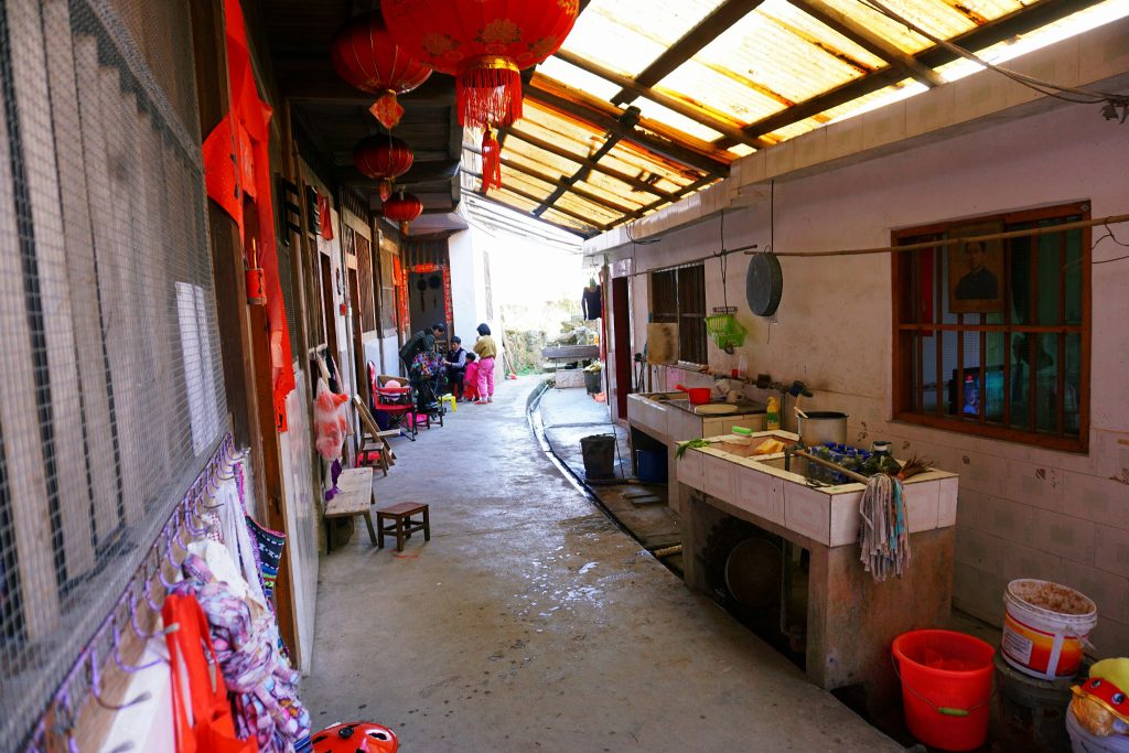半环形的土楼,其实也是由两排组成的,外面的一排是3层的,第一层是厨房和餐厅,第2、3层这时居住用的。里面的一排,则全部是客厅,用来会客的。每一个家庭的客厅都是紧挨着的,每一家的厨房和餐厅也是紧挨着的,在这样的环境下从小长到大,可想而知,邻居之间的关系肯定必须非常的亲密,伙伴之间的感情也肯定是非常的深厚。