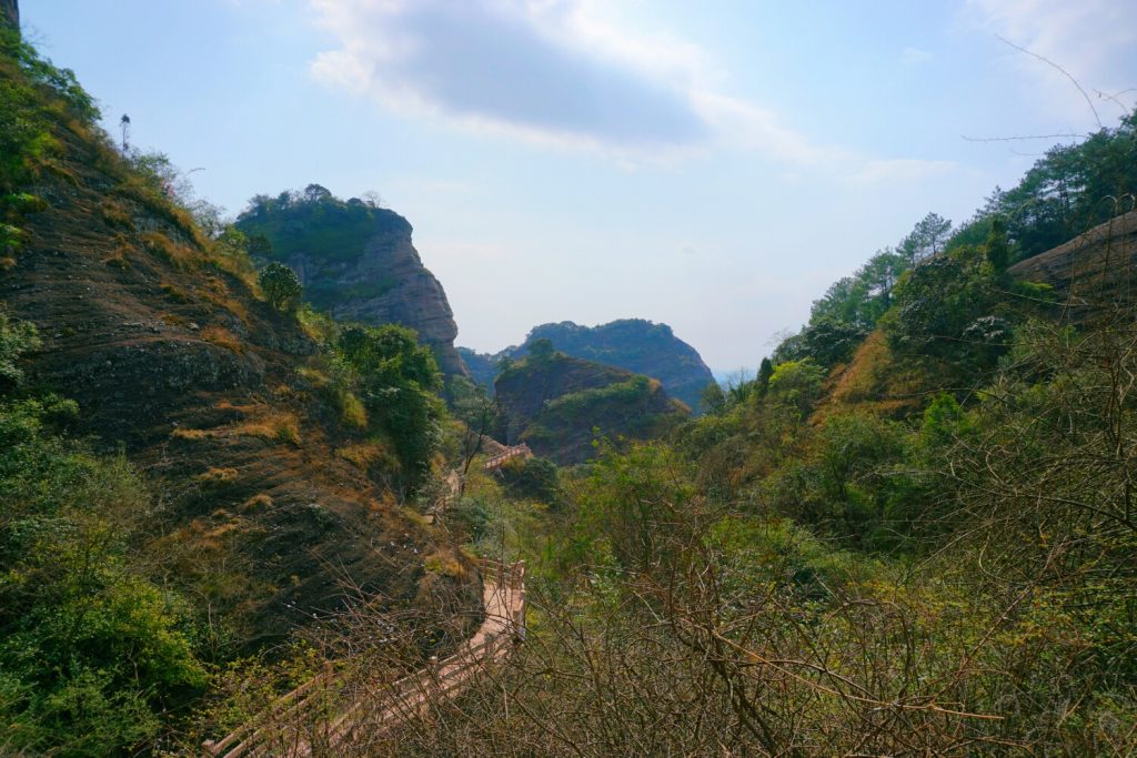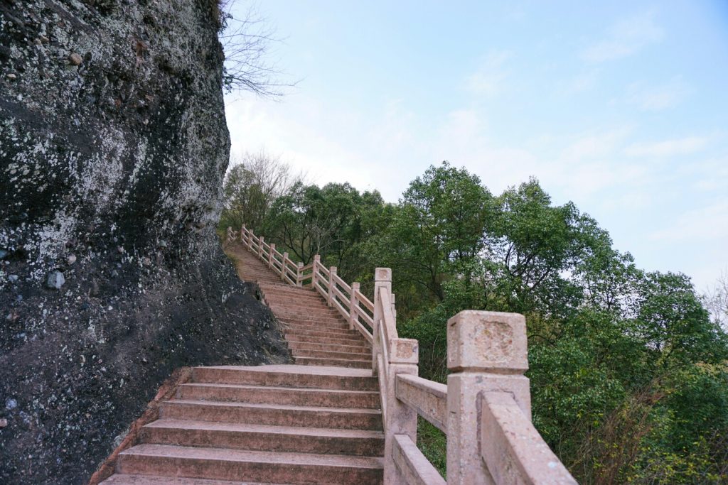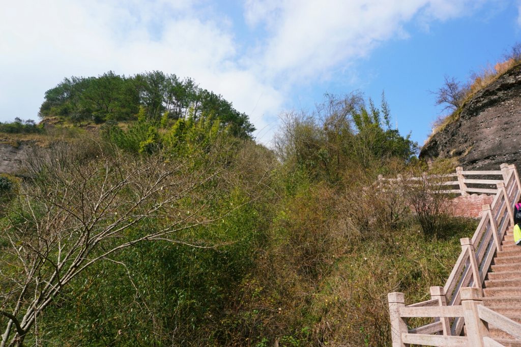 从冠豸山的后山爬上去,比从正门进去,可以更快的到达山顶。顺着鲤鱼背往上爬,随着高度的增加,时而回头,秀丽的山峰顿入眼中,美丽就在眼前。