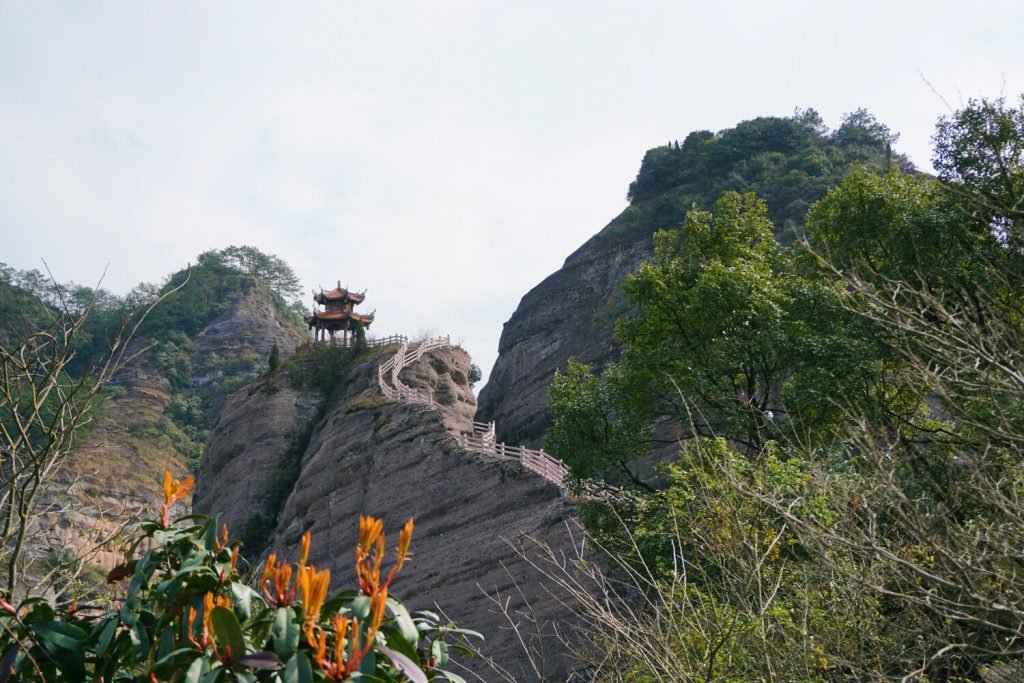 从冠豸山的后山的码头上山,很快就会经过名叫必达亭的小景点,稍微休息一下,或者在这里看一下高空特技表演都很不错的。