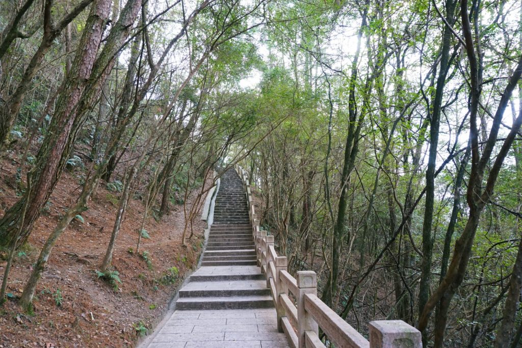 翻过锂鱼背,就可以上到 长寿 峰了,在 长寿 峰上有一个 长寿 亭。从鲤鱼背到 长寿 峰的路有点小险的感觉,算是热身吧。台阶依山而建,蜿蜒而上。