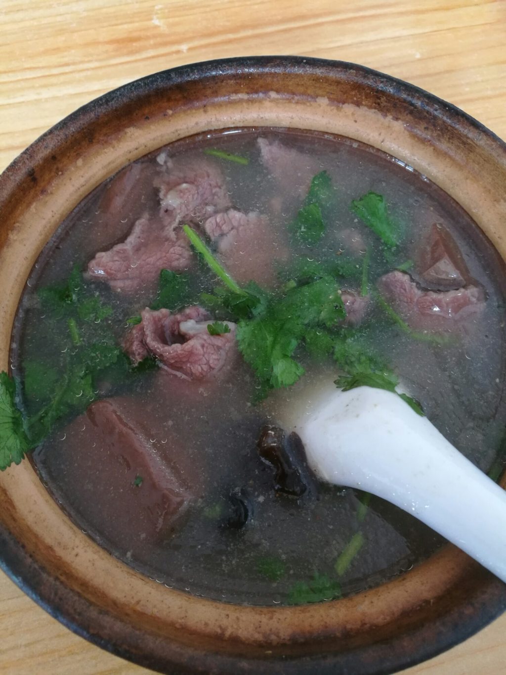 在冠豸山的山下,不远处就是城区了,也就是 连城 县城。这里有很多的小吃美食。但我要推荐的是牛肉汤和一种神奇的水果。 连城 多山,养牛的非常多,所以本地的牛肉新鲜,而且不注水。早餐时,用新鲜的牛肉切成薄片,做汤,滑嫩滑嫩的,加点香菜的牛肉汤更是美味。与北方的牛肉汤不同, 连城 的牛肉汤是清汤类型的,不显油腻。而且牛肉汤中还放点鸭血,凉性的,所以这牛肉汤吃了不会上火的哦。