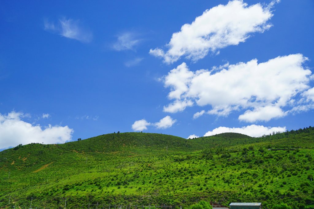 在 纳帕 海的草原上看周围的山,天气不错。风景自然也不错。
