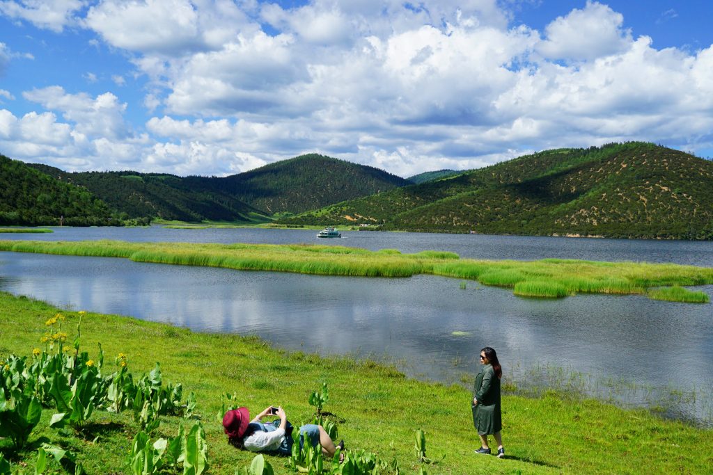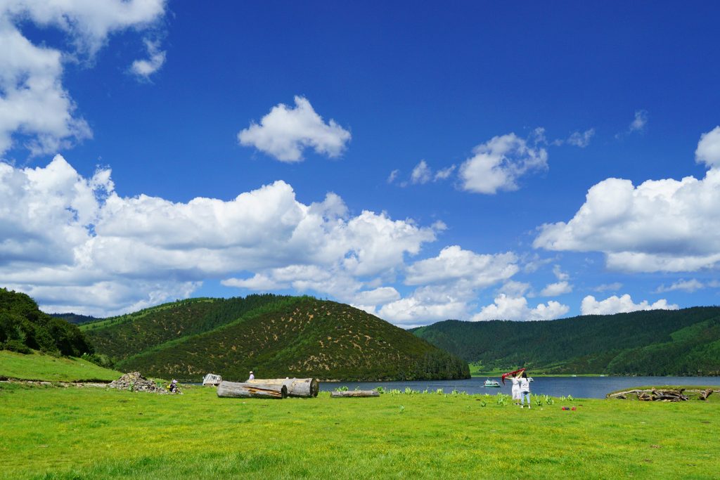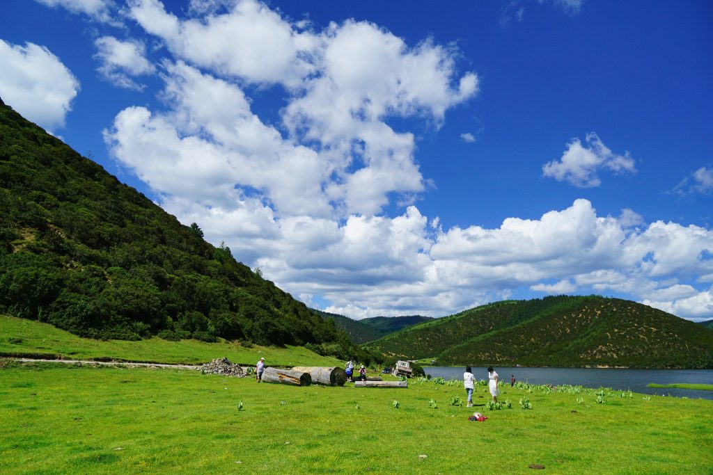 到达属都湖之后,蓝天白云草地,让人忍不住的想拍照啊。就算是平时不爱拍照的人,也放下了内心的矜持,争先恐后的摆poss。