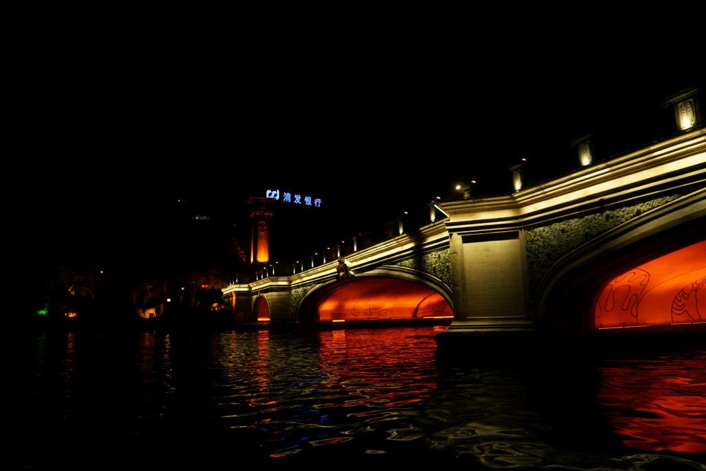 反正桥的风格几乎没有相同的。这种孔桥的孔中是有石刻的。根本来不及看清石刻的内容,游船的速度还是比较快的。