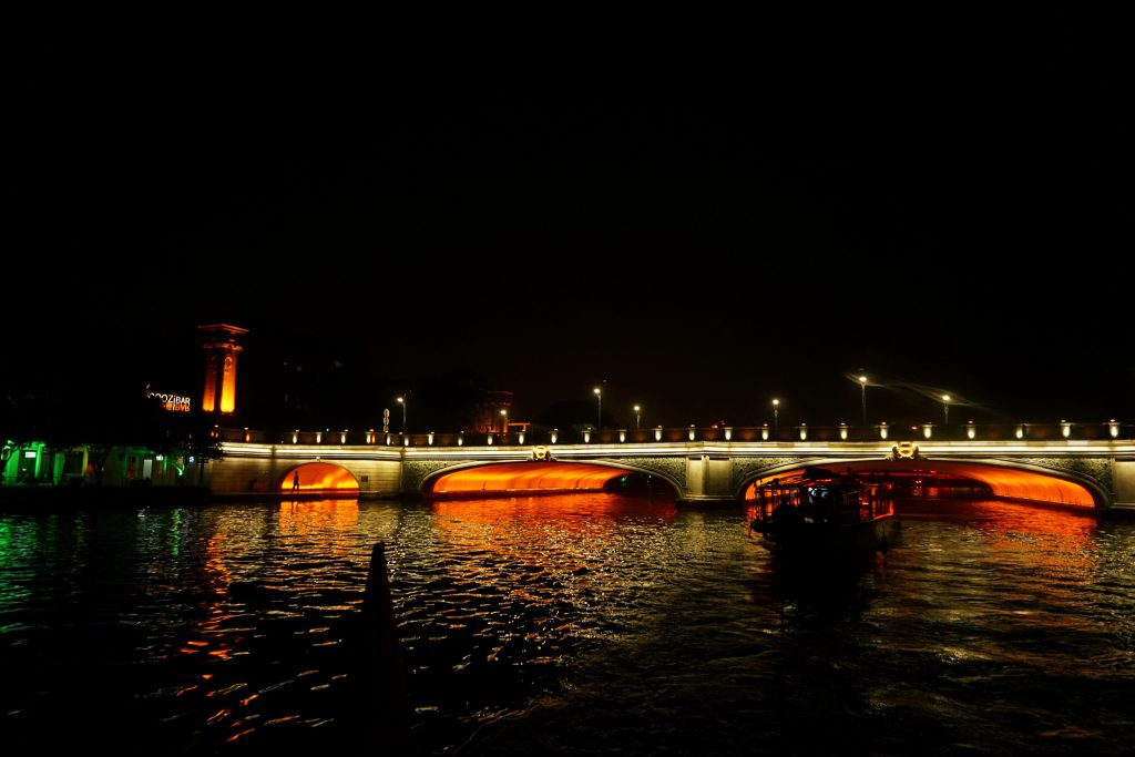 游船要经过很多很多的桥,从桥底下穿过,桥底下都有浮雕,或者是涂鸦。很文艺的感觉哟。