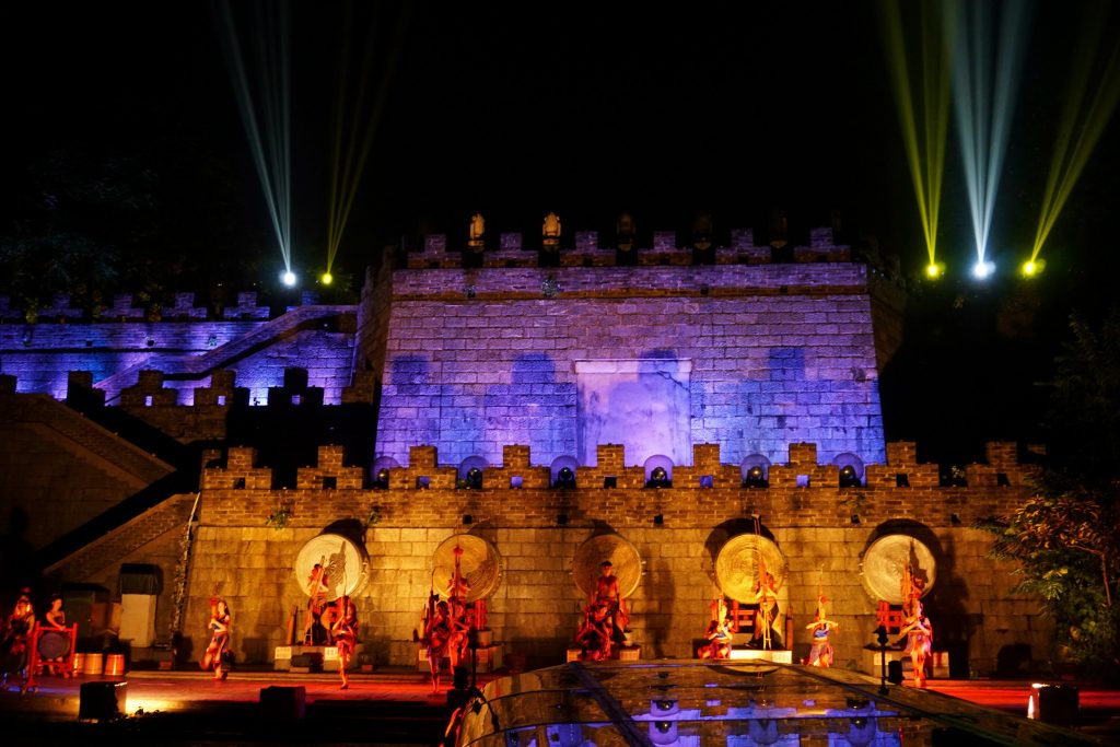 这个停泊点,要停大概10~15分钟的时间吧,游客不下船,就坐在船上看表演。震撼的音乐,加上灯光效果,我没看懂表演的内容是啥子,我只是去关心灯光的光影效果和音乐效果了。
