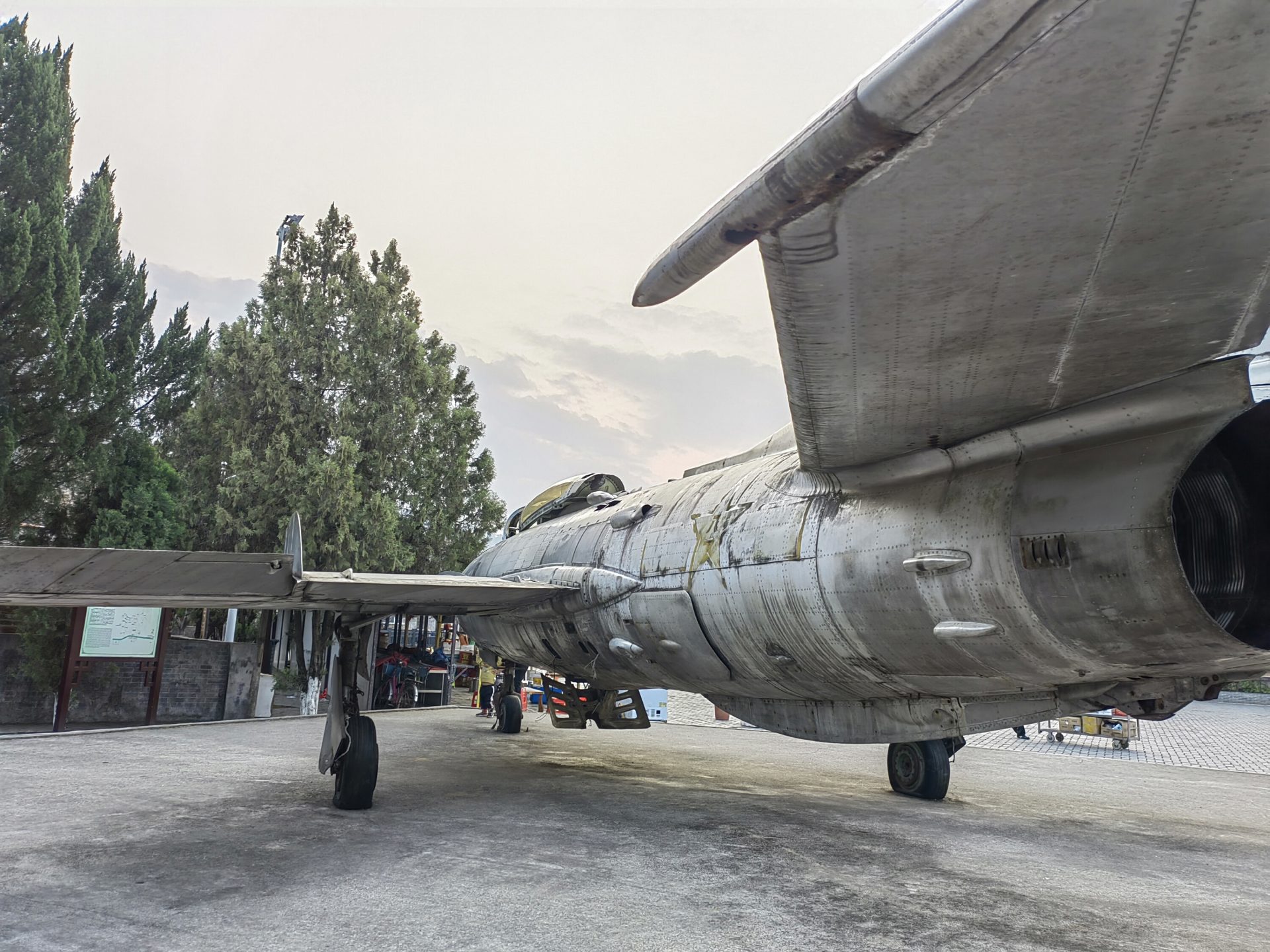 这是一架歼6型战斗机。仔细看,才发现原来使用不锈钢制作的。是20世纪60年代中国沈阳飞机制造工业公司研制的一型单座双发超音速喷气式战斗机。重点是这架战斗机的飞行速度,是可以超音速的。